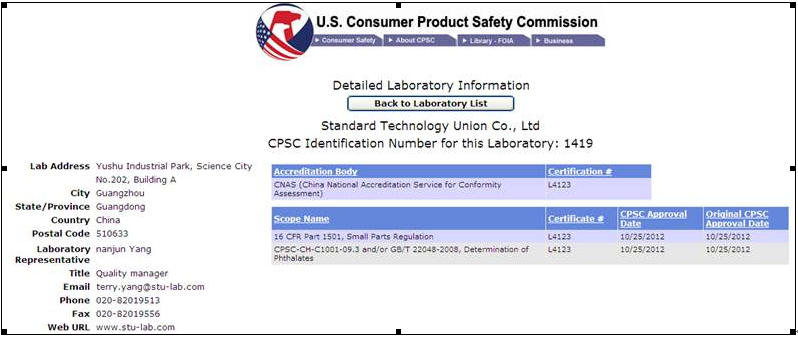 美國消費者產品安全委員會CPSC授權